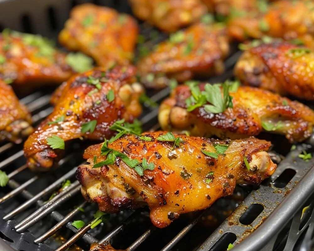 - Flip the wings and air fry for an additional 8 minutes, or until they are crisp and golden brown on the outside.