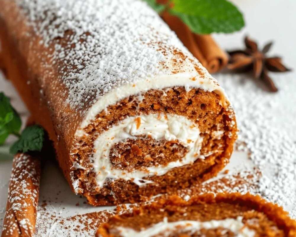 - Once the cake is completely cool, carefully unroll it. Spread the cream cheese filling evenly over the cake. Re-roll the cake tightly without the towel.