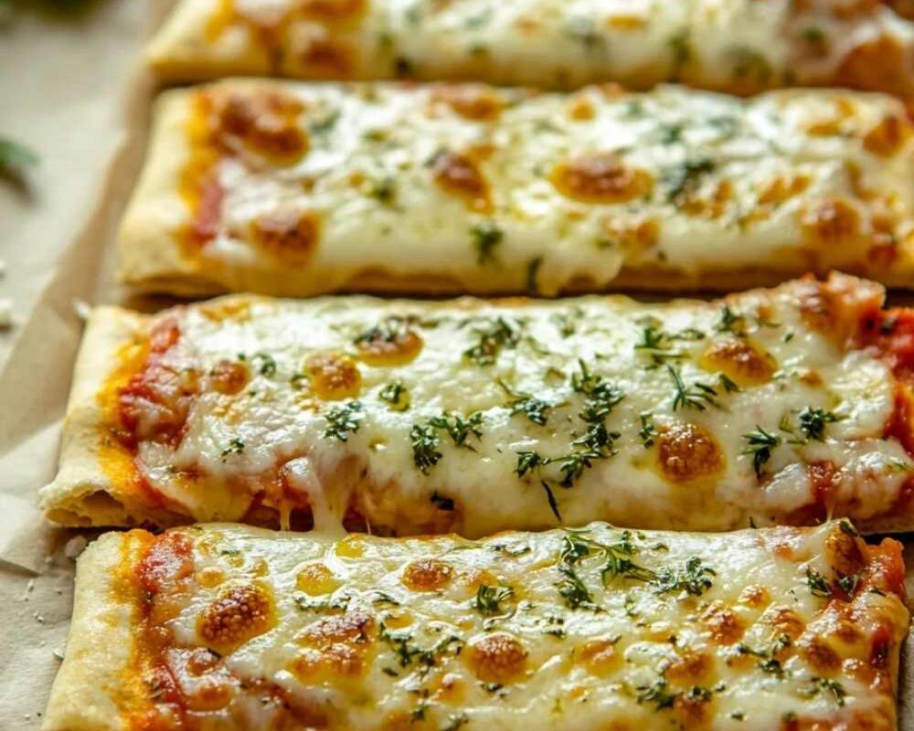 - Once baked, slice the bread into breadsticks and serve warm. Enjoy with pizza sauce for dipping, if desired.