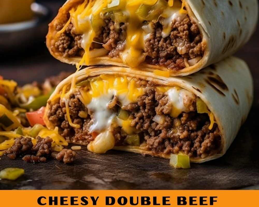 - Serve immediately and enjoy your cheesy double beef burritos!