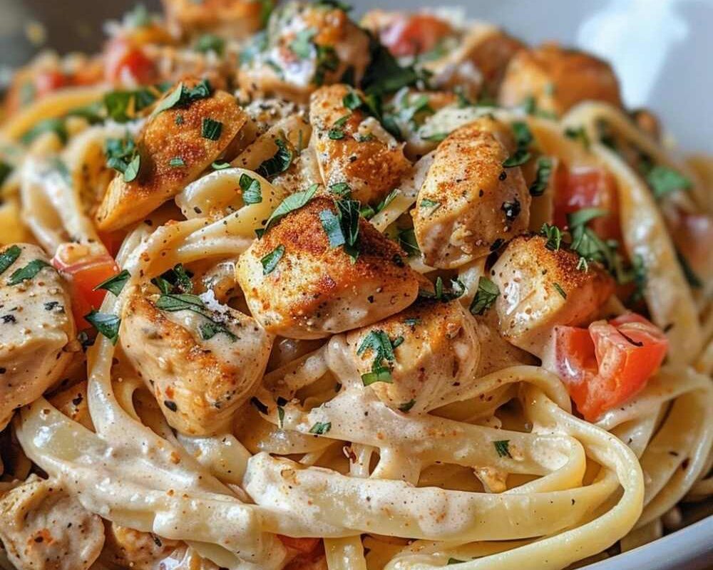 - Add the sliced chicken and cooked pasta to the sauce, tossing until everything is well combined and heated through.