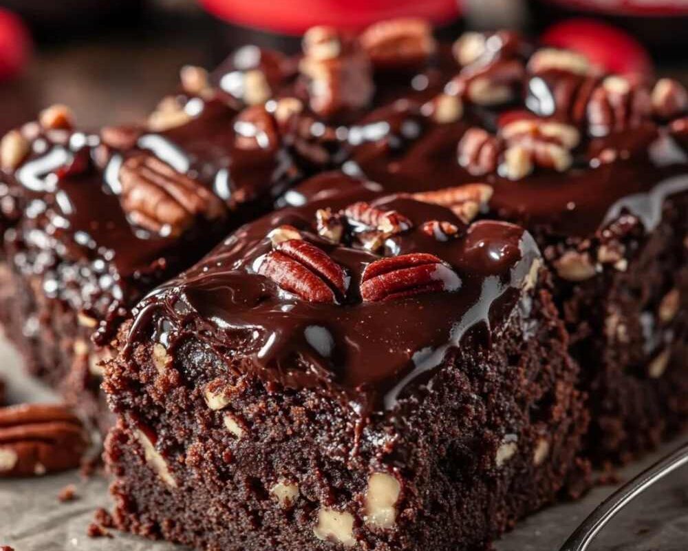 - Sprinkle the chopped pecans evenly over the top of the icing.