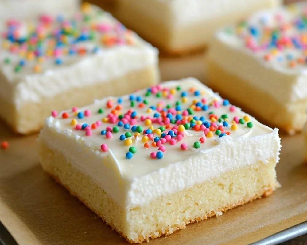These sugar cookie bars are soft, buttery, and perfectly sweet with a creamy buttercream frosting!