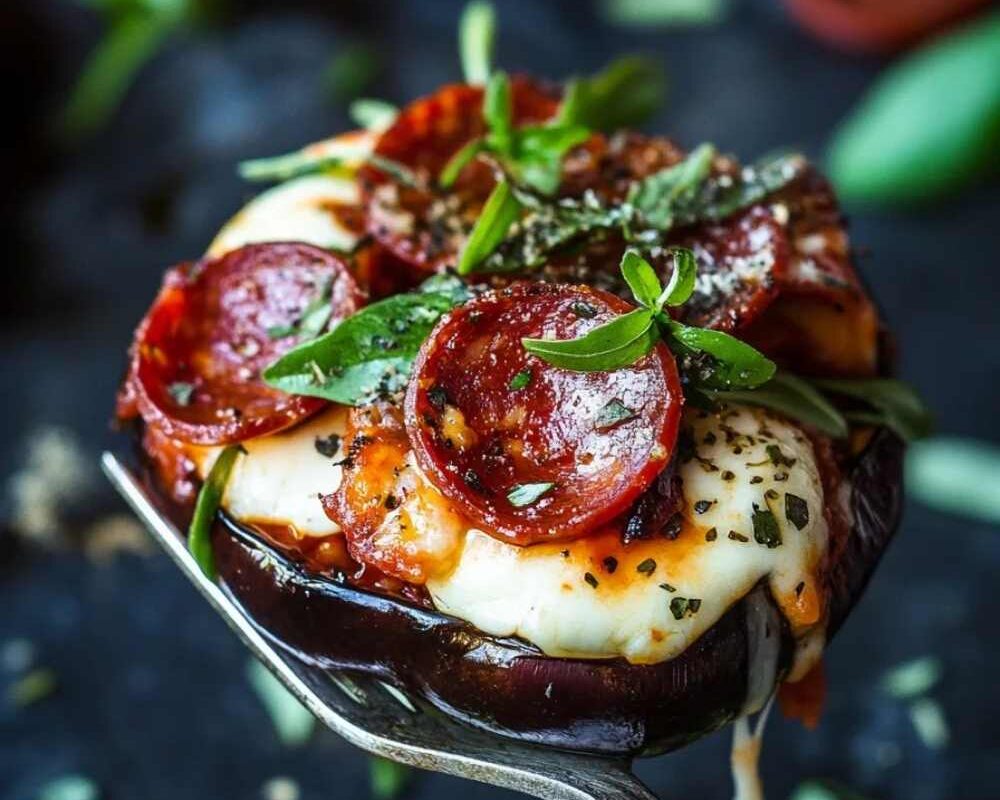 - Return the eggplant pizzas to the oven and bake for 5-7 minutes, or until the cheese is golden and bubbly.