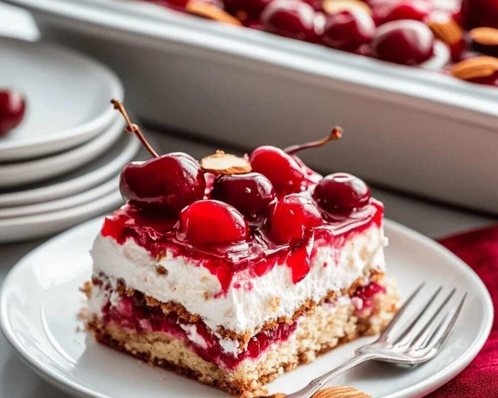 - Dollop the remaining cherry pie filling on top.