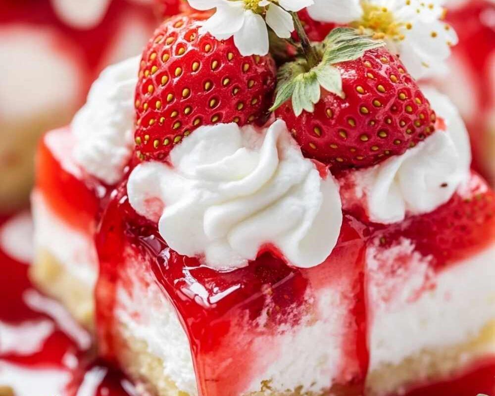 Enjoy your refreshing and delightful Strawberry Shortcake Poke Cake!