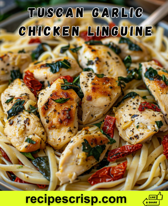 Enjoy this rich and flavorful Tuscan Garlic Chicken Linguine, a delightful mix of tender chicken, sautéed vegetables, and creamy sauce, perfect for a cozy dinner.