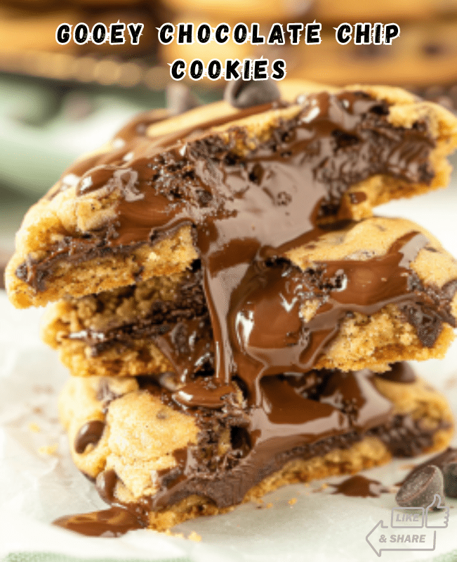 Enjoy these decadently gooey chocolate chip cookies while they’re still warm, paired perfectly with a glass of cold milk or your favorite beverage.