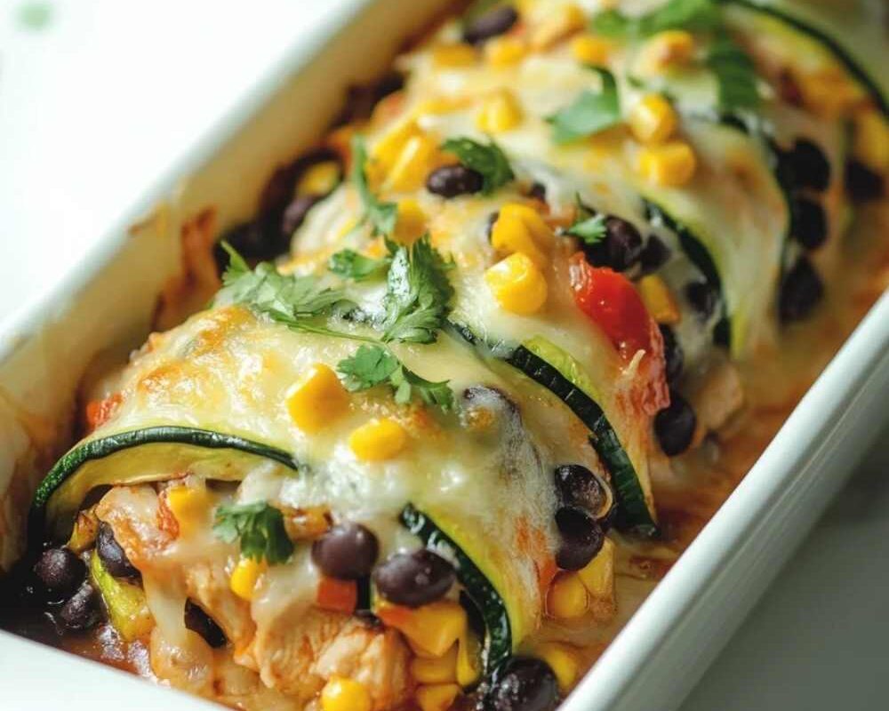 - Drizzle the remaining 1/2 cup of enchilada sauce over the top of the zucchini rolls.